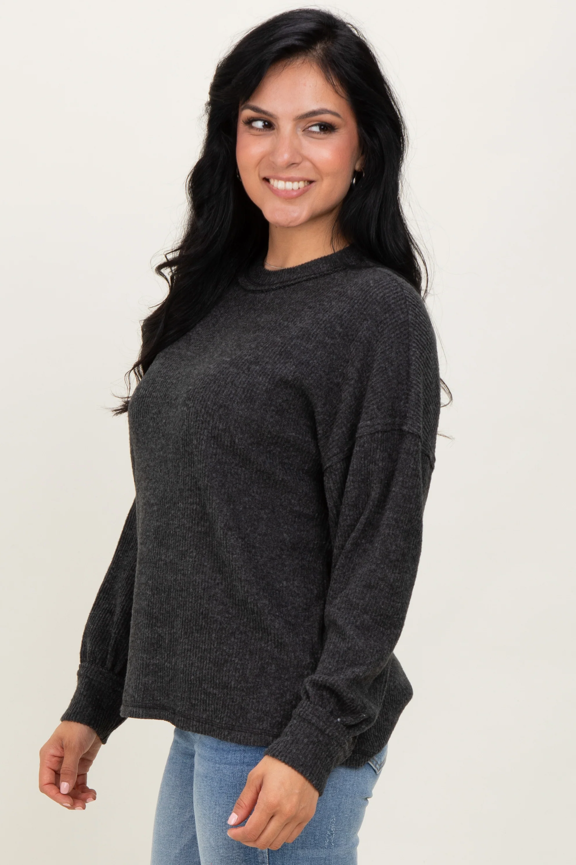 Stay cozy and stylish with our Black Brushed Ribbed Knit Pullover. Crafted from soft, brushed fabric, this pullover offers a lightweight yet warm feel perfect for layering in cooler weather. The classic ribbed texture adds subtle dimension, while the relaxed fit and dropped shoulders create an effortlessly chic silhouette. Featuring a crew neckline and long sleeves with fitted cuffs, it pairs beautifully with jeans or your favorite casual pants. Ideal for everyday wear or weekend outings, this versatile black pullover is a must-have staple for your fall and winter wardrobe. Easy to dress up or down with comfort and style in one piece.