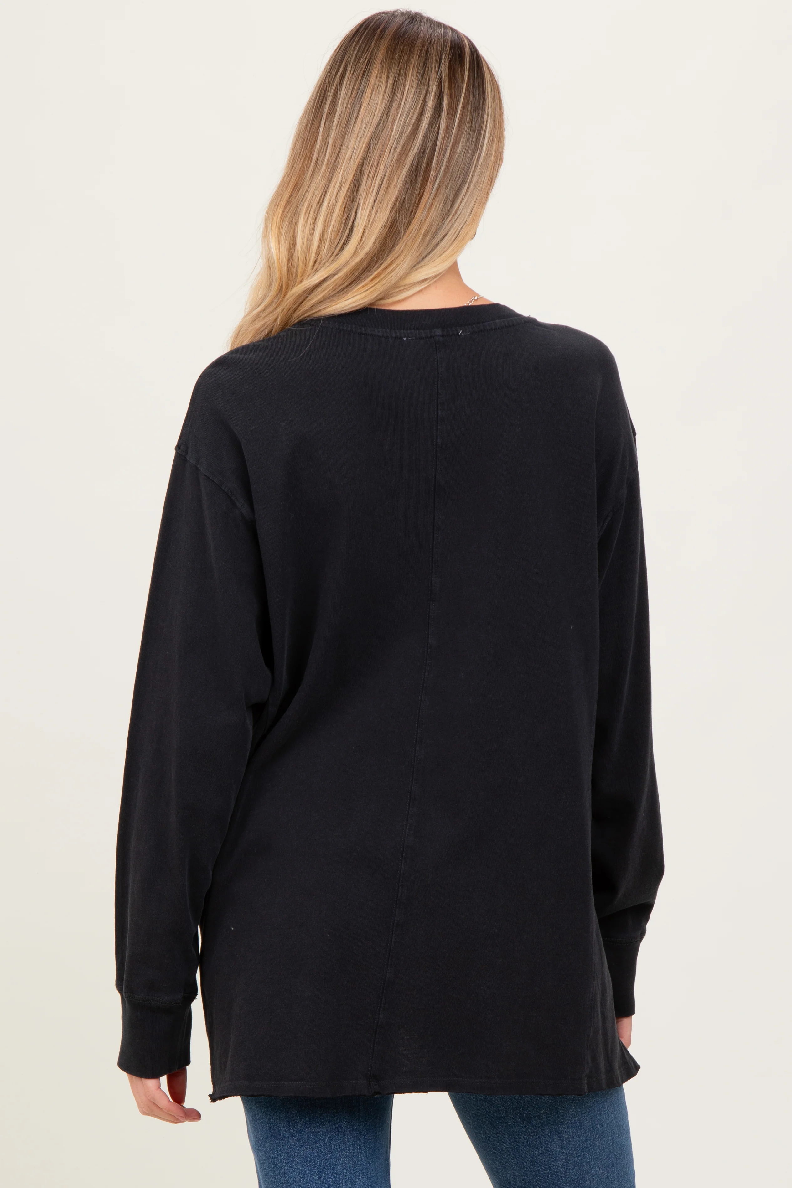 Stay cozy and stylish throughout your pregnancy with our Black Mineral Washed Drop Shoulder Long Sleeve Maternity Top. Crafted from ultra-soft, breathable fabric, this top features a relaxed fit that comfortably accommodates your growing bump. The mineral-washed finish adds a trendy, lived-in look, while the drop shoulder design enhances casual comfort. Side slits provide extra movement, making it perfect for everyday wear. Pair it effortlessly with your favorite maternity jeans or leggings for a chic, laid-back vibe. Essential for every maternity wardrobe, this long sleeve top combines comfort and style in one versatile piece.