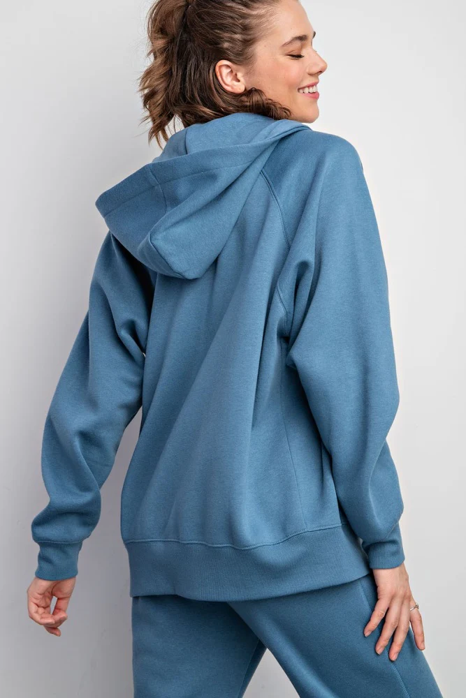 Stay cozy and stylish with our Blue Relaxed Fit Fleece Zip Hoodie. Crafted from soft, plush fleece, this hoodie offers all-day comfort with a laid-back silhouette perfect for casual outings or lounging at home. Featuring a full front zipper, adjustable drawstring hood, and ribbed cuffs and hem for a secure fit, it pairs effortlessly with matching joggers or your favorite jeans. The serene blue shade adds a fresh, versatile touch to your wardrobe. Ideal for layering, this versatile hoodie will keep you warm without sacrificing style. Your new go-to for effortless cool and comfort.