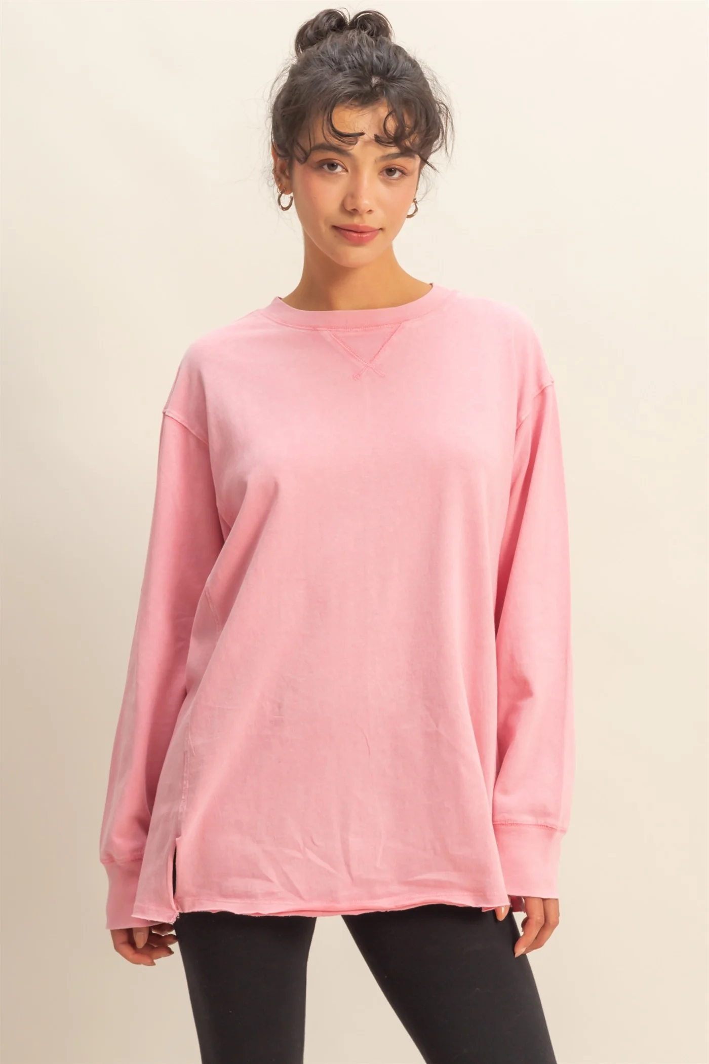 Experience comfort and style with our Pink Mineral Washed Drop Shoulder Long Sleeve Maternity Top. Crafted from super-soft, breathable fabric, this top features a relaxed, oversized fit that adapts effortlessly to your growing bump. The mineral wash finish adds a trendy, lived-in look, while the drop shoulder design and cozy long sleeves provide a laid-back vibe perfect for any casual day. The raw edge hem gives it a cool, modern touch. Pair it with your favorite maternity jeans or leggings for an easy, everyday outfit that keeps you comfortable from morning to night. Ideal for all stages of pregnancy.