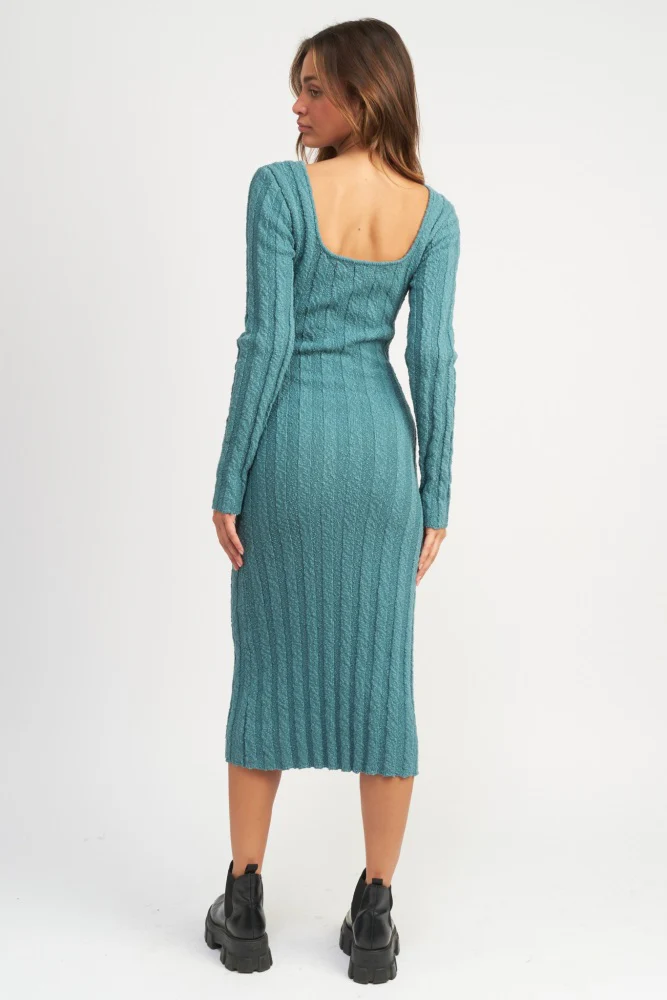 -70%Teal Long Sleeve Knit Sweater Dress—